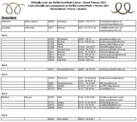 Die offizielle Liste der Ra'Ma'LichtReiki Lehrer